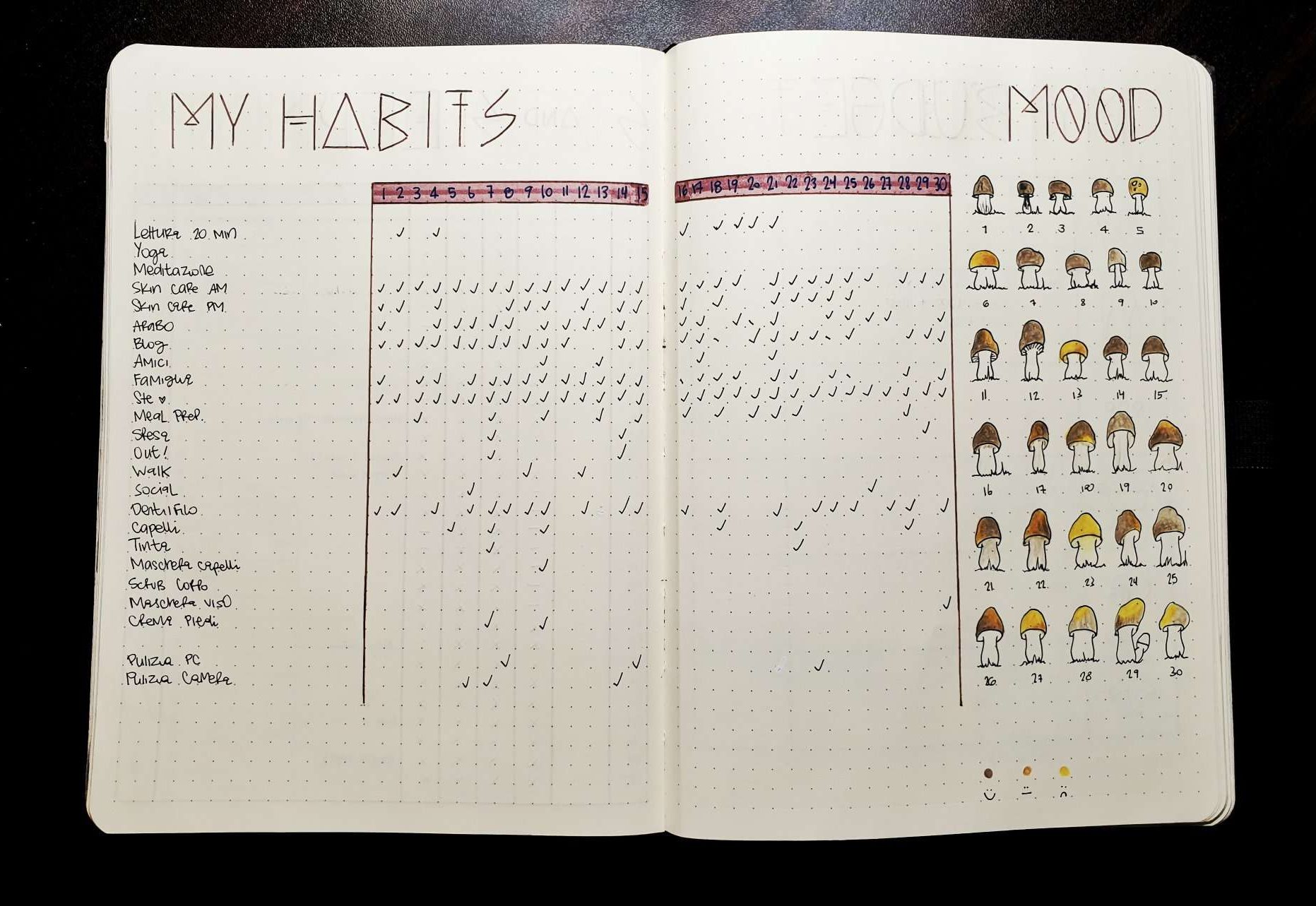 - Tenere traccia delle tue abitudini, di quelle che vuoi introdurre nella tua routine e di quelle da eliminare. Se quindi vuoi smettere di fumare, creare un tracker divertente e motivante in cui segni ogni giorno in cui non tocchi una sigaretta. Idem se vuoi motivarti a fare stretching al mattino quando ti svegli. Ecco qui sotto qualche esempio di tracker da copiare!